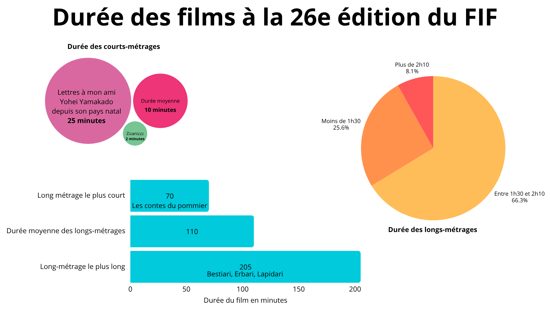 Cette infographie compare les différentes durées  des longs et courts métrages qui ont été présentés au Festival International de la Roche-sur-Yon.